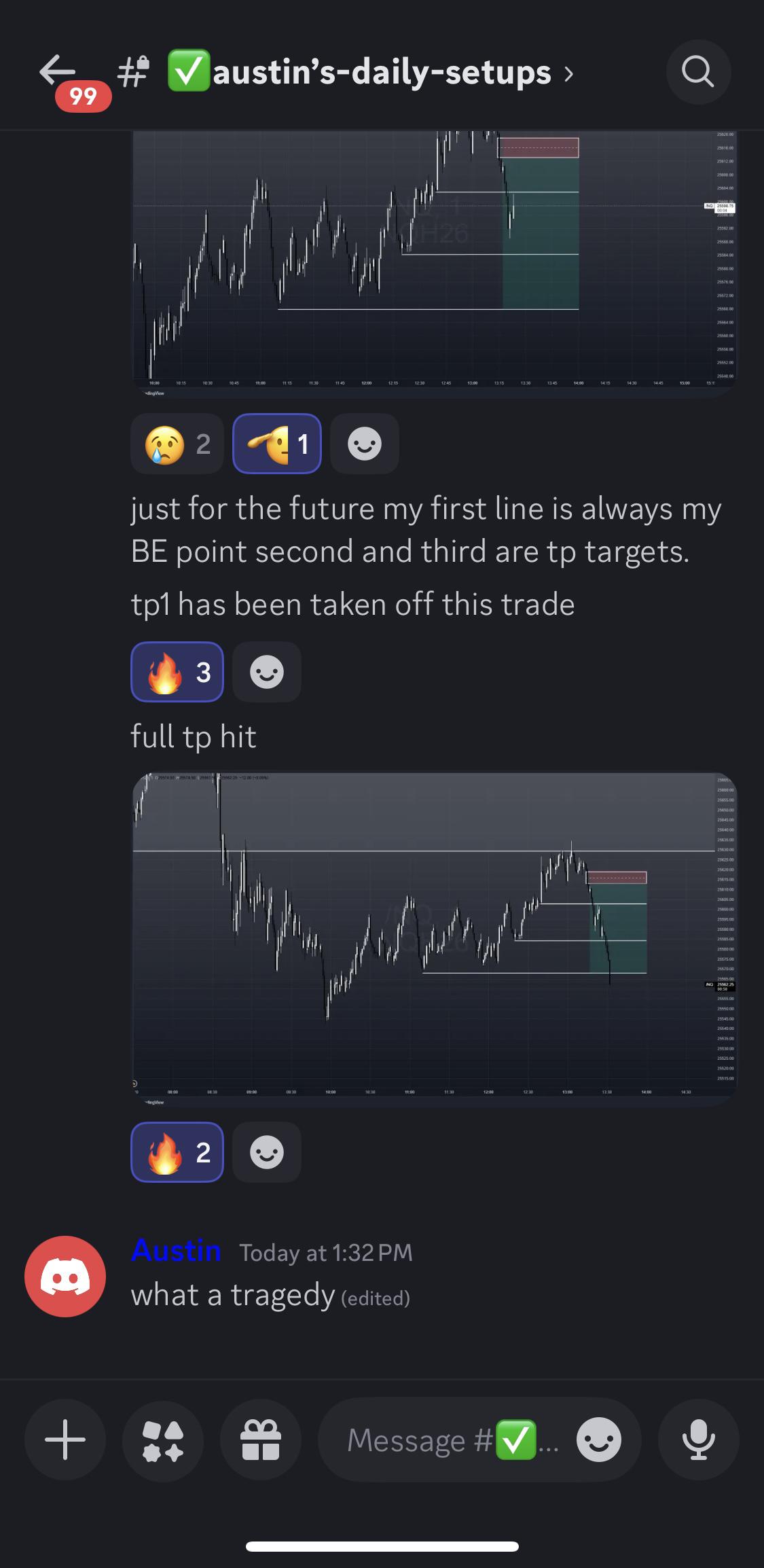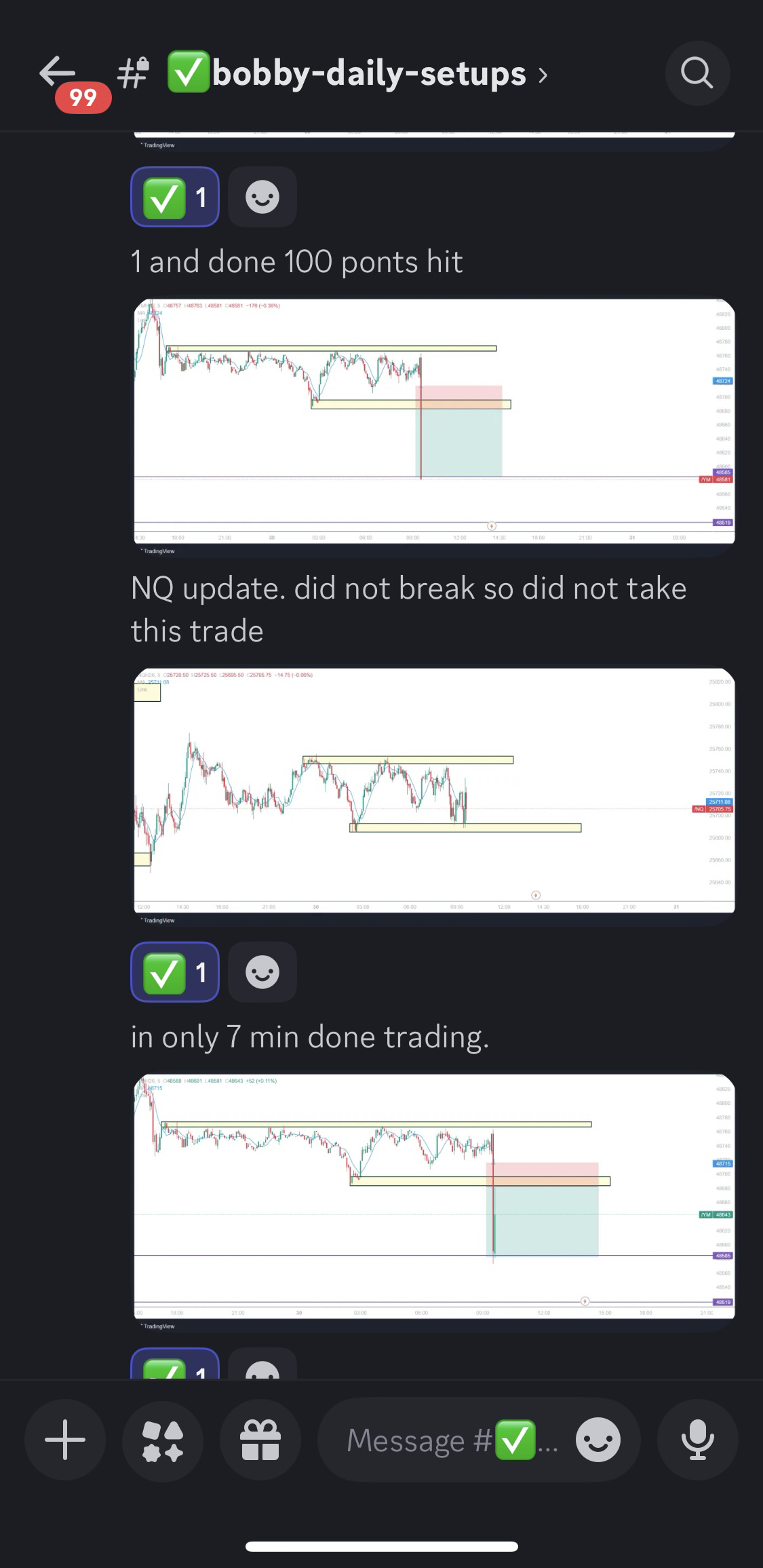 No. Our callouts and setups are educational trade ideas and examples. You’re responsible for your own trades, sizing, and decisions.