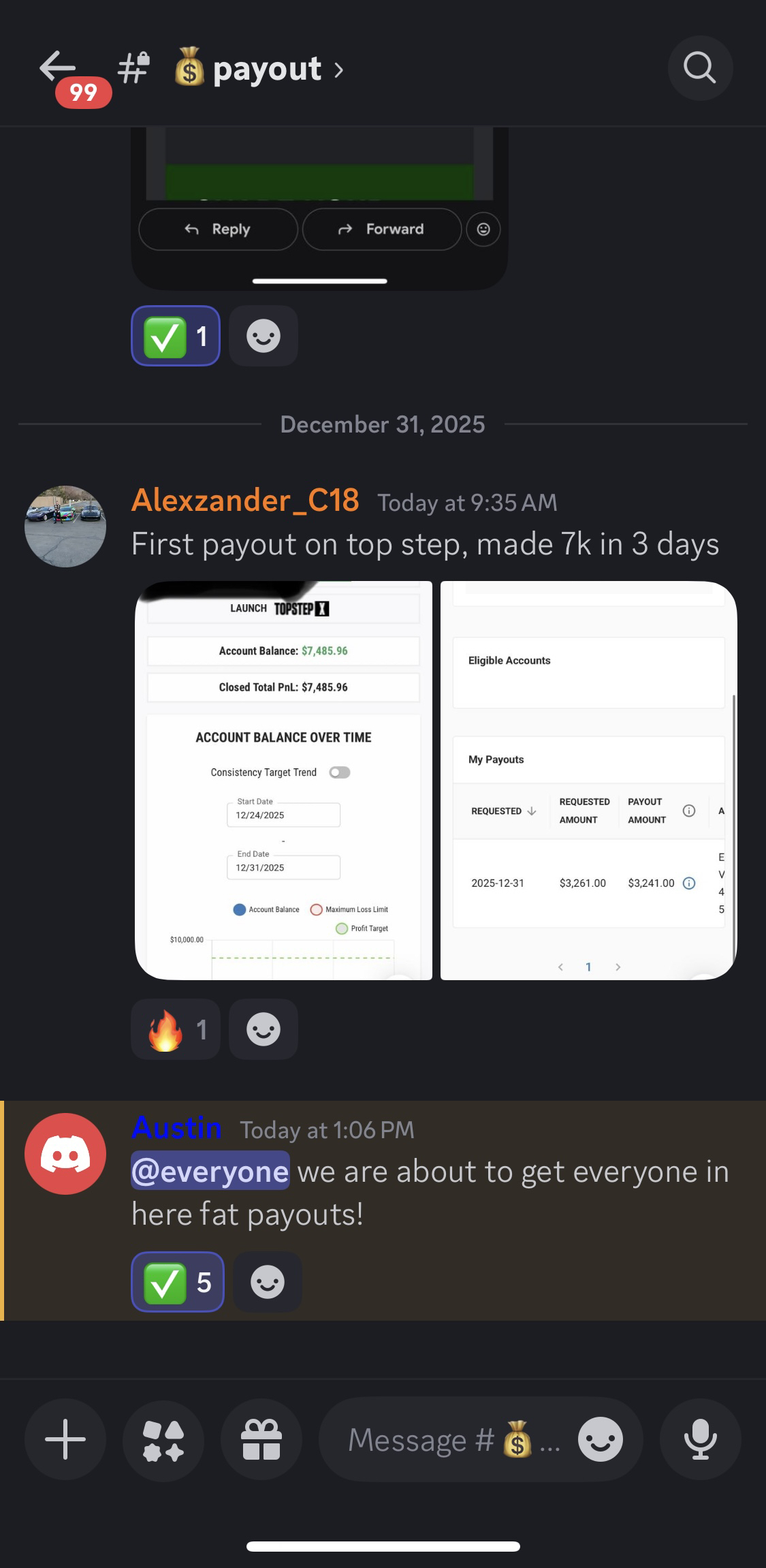 A student shared their first Topstep payout — a real example of what consistency can do.
