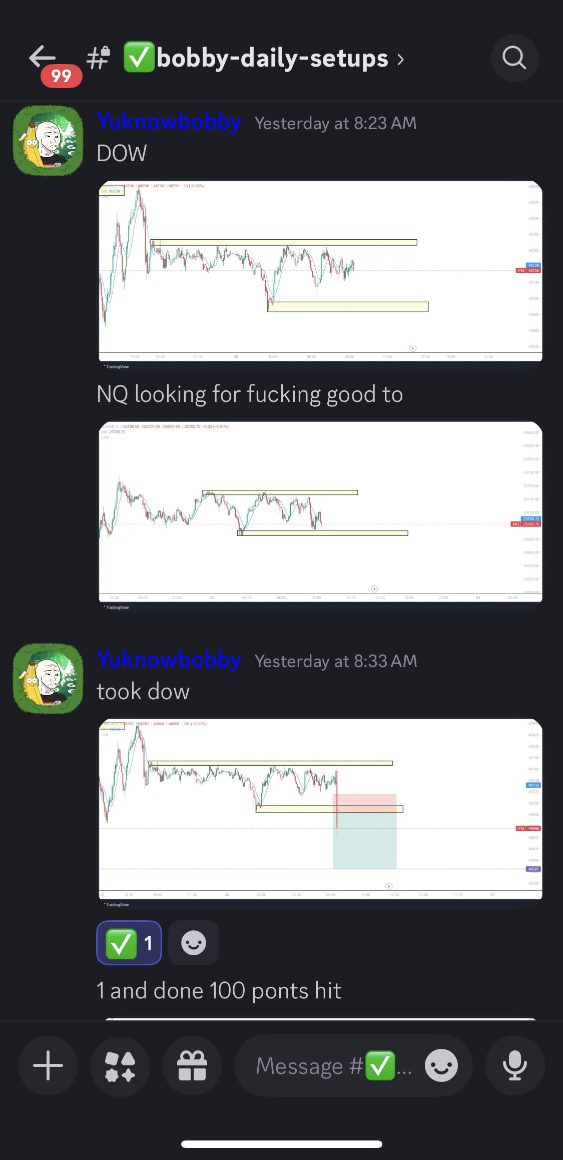 Daily setup with defined bias + execution plan so members know exactly what to look for.